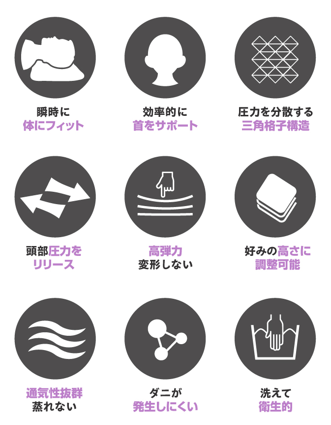 柔らかすぎても硬すぎても首に負担がかかってしまいます。ですが、TPE素材を使うことで一人一人の異なる頭の形に合わせて、理想的な形にフィットしてくれます。