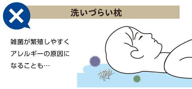 枕本体を長期間洗っていないと、雑菌やダニが繁殖しやすく、頭皮トラブルや肌トラブルを起こす可能性につながってしまいます。